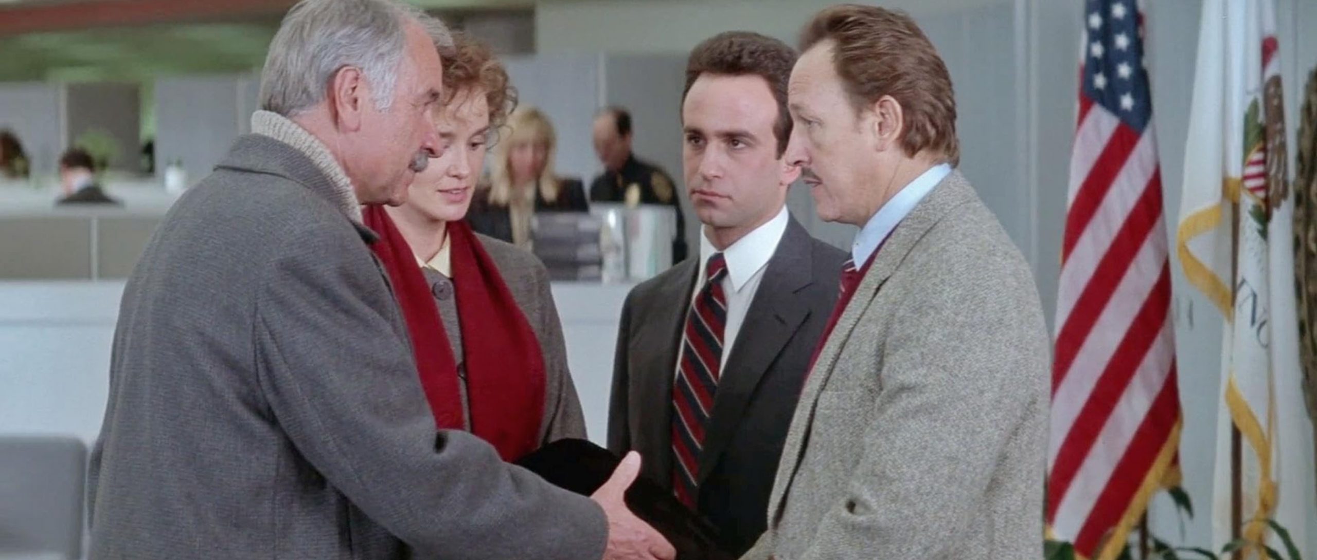 Another performance worth mentioning comes from Fredrick Forrest, who portrays Jack Burke, the man tasked with securing the conviction against Lazlo. Forrest plays the man as the complete opposite of Ann. He is not looking for someone to take the fall for these crimes; he is 100% convinced of Lazlo’s guilt. A scene early on, where he first confronts Anne and Lazlo with the charges, is chilling. When Lazlo reaches out to shake his hand, Burke refuses, staring him down. Then when Anne tells Burke, “Look, this is a mistake. You’ve got the wrong Michael J Lazlo,” he doesn’t take his eyes off of Lazlo as he responds, “Like Hell we do.” His tone is that of a convinced man… a man who is desperate to right a wrong. This performance is a perfect balance with Anne’s belief in her father’s innocence and need to protect him, making for one of the most powerful moments in the film.